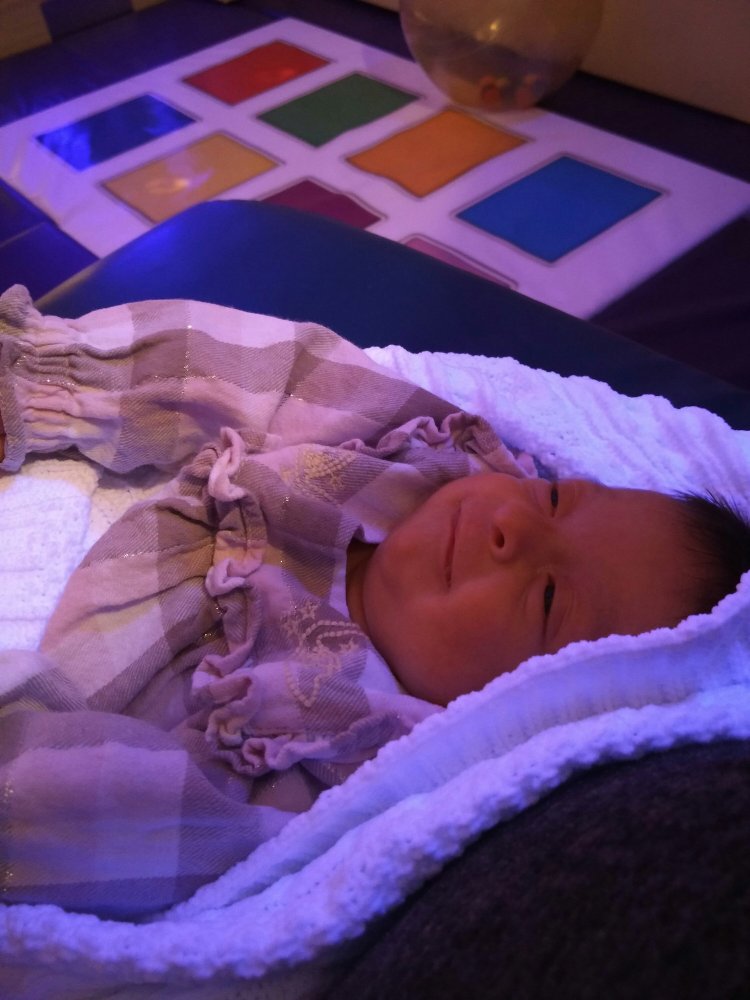 The sensory room was amazing, a truly relaxing experience for both Clara and I. We sat deep into a thick padded low rocking armchair, reclined slightly so Clara could see the disco ball, the kaleidoscope light patterns, and the floor to ceiling lava lamp. The soft high pitched noise of dolphins and whales gently calling to us soon sent Clara into a deep sleep, her body peacefully snuggled into mine. For the first time in a very long time, I found my shoulders relaxing and I was able to breathe deeply.