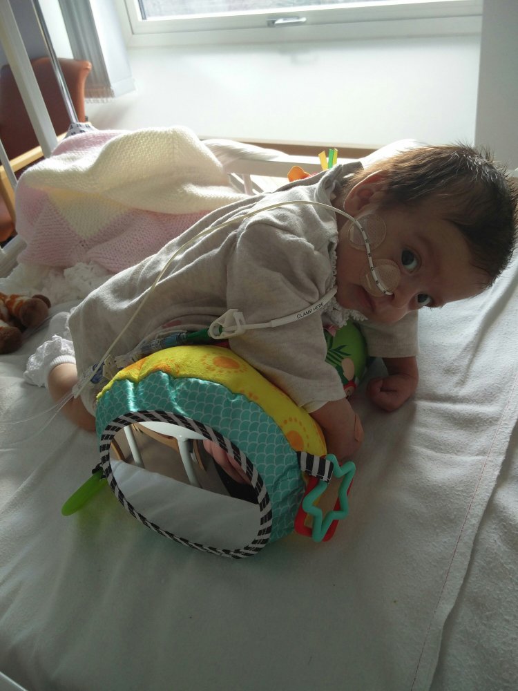 Now Clara has recovered from her two operations recently, it’s back to tummy time. Laura, one of our lovely nurses, reassured me having a stoma will not stop us doing ‘normal’ developmental things. So I thought let’s get going. (I’m still paranoid Clara won’t reach developmental milestones for some reason… Damn you Google).