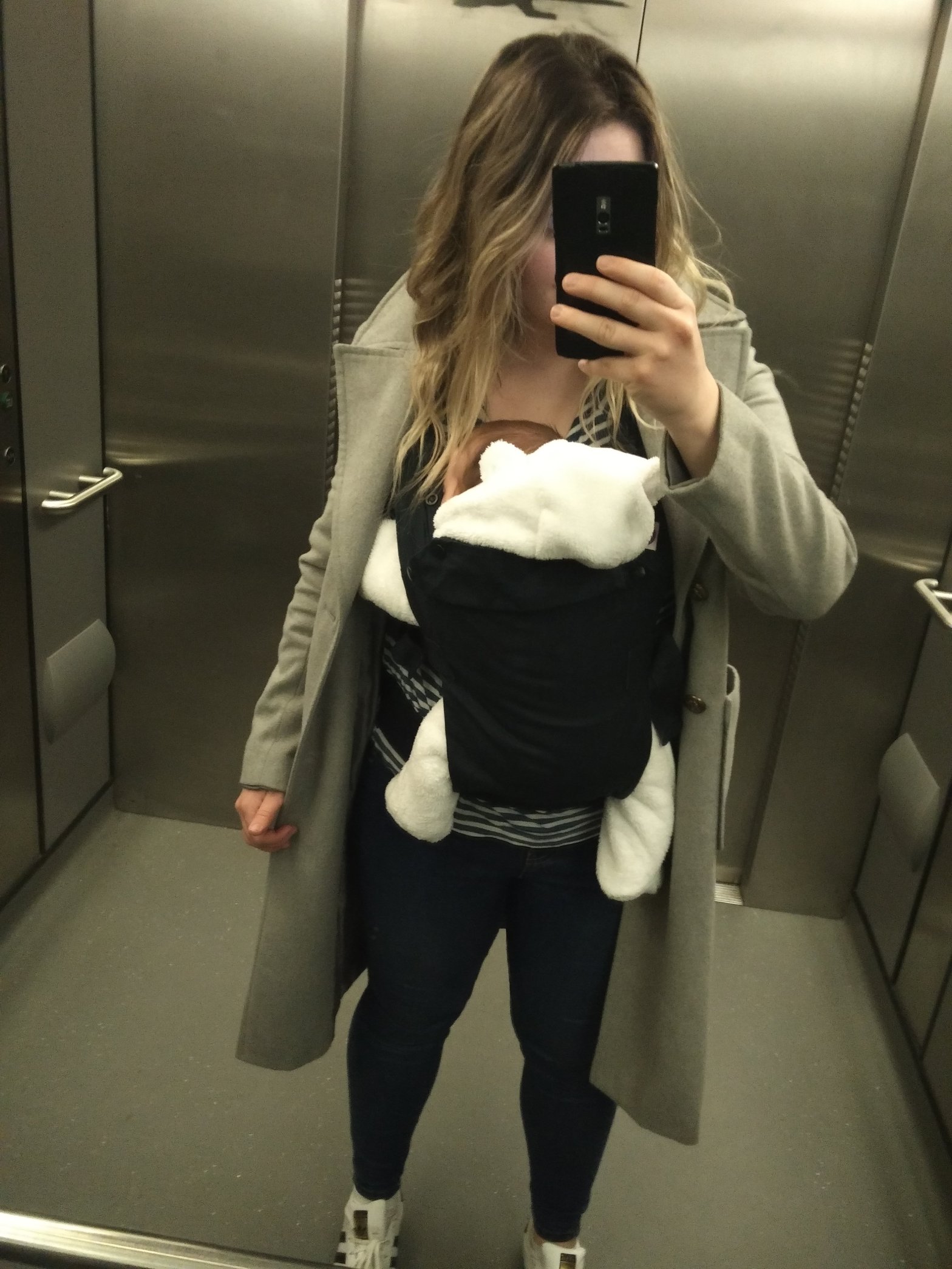 Clara absolutely loved it! Her new favourite thing is to be cuddled into me so she can grab my top with her fingers and hold on. The carrier allowed her to do that, stay warm, move around, and see new things. Everything that makes Clara happy!