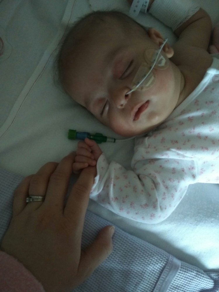We stayed like this most of the night. Occasionally she’d let go and settle, but when she cried out she’d grab my finger again.