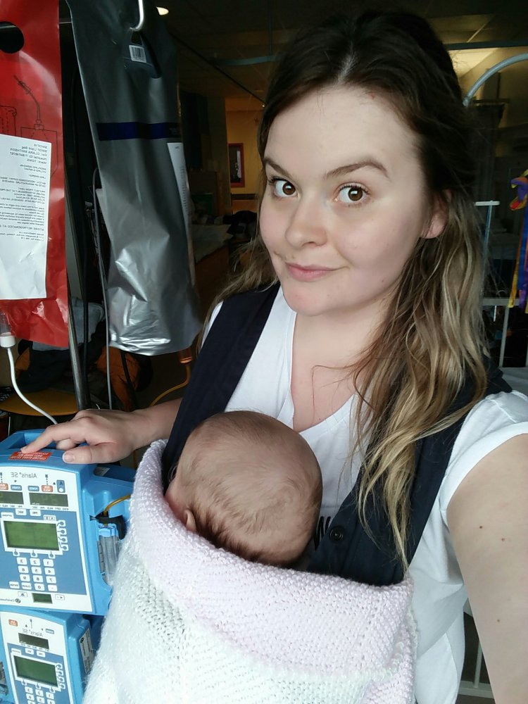 For now, I’m going to continue walking the corridor of Tom’s with Clara in the baby carrier and the pump stand in my left hand. (So much nicer now there’s no fear of a stoma bag bursting.)