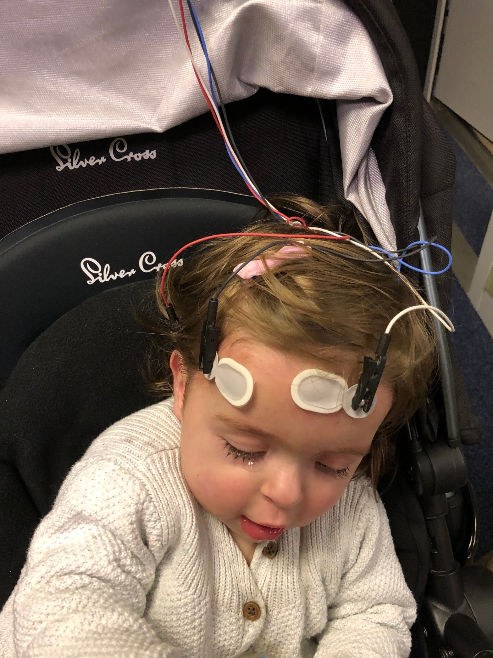 In an ideal world, the child would then sleep and the wires would hook into a device plugged into a laptop which would monitor brain waves.